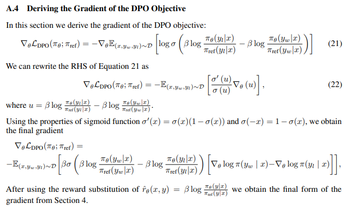 For a mechanistic understanding of DPO, it is useful to analyze the gradient of the loss function L_DPO. The gradient with respect to the parameters θ can be written as: