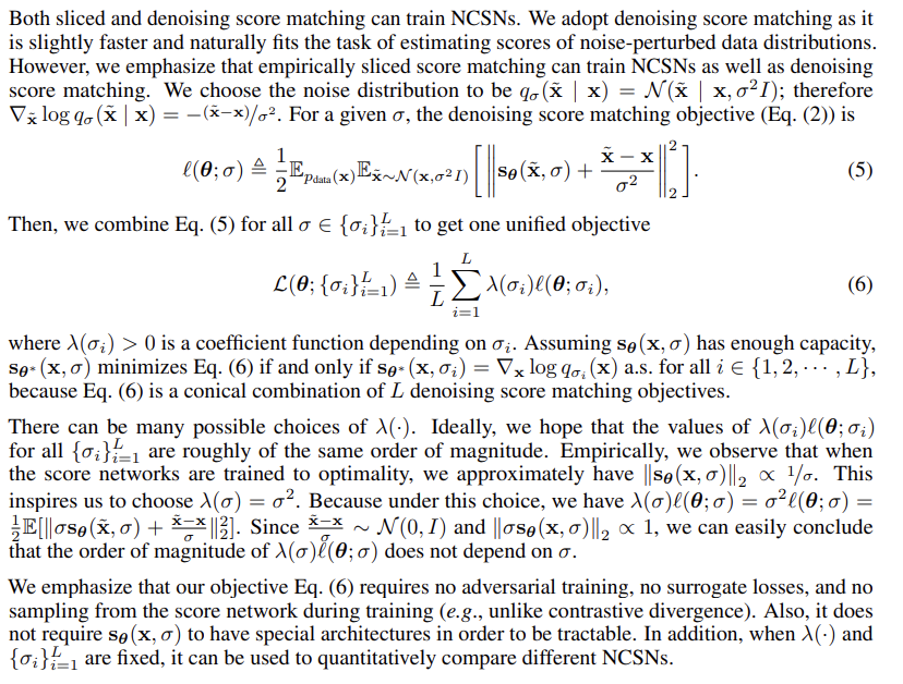 4.2. Learning NCSNs via score matching