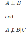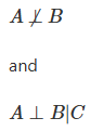 - A⊥F|E,C. It contains a collider, B->E<-F, that it has been conditioned on, but it contains a non collider that has been conditioned on. Conditioning on E opens the path, but conditioning on C closes it again.