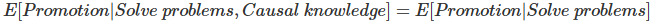 . The inverse is also true; once I know how good you are at solving problems, knowing about your job promotion status gives me no further information about how likely you are to know causal inference.