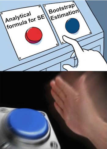 However, we can only use this if we have the true propensity score. If we are using the estimated version of it, P^(x), we need to account for the errors in this estimation process. The easiest way of doing this is by bootstrapping the whole procedure. This is achieved by sampling with replacement from the original data and computing the ATE like we did above. We then repeat this many times to get the distribution of the ATE estimate.