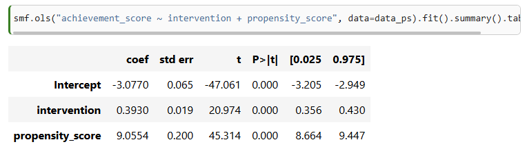 One final word of caution here is that the above standard errors are wrong, as they don’t account for the uncertainty in the estimation of the propensity score. Unfortunately, bootstrap doesn’t work with matching. Also, the theory above is so recent that there are no Python implementations of propensity score methods with the correct standard errors. For this reason, we don’t see a lot of propensity score matching in Python.