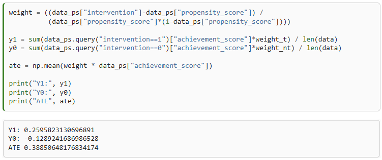 Finally, we can use our propensity score weighting estimator to estimate the average treatment effect.