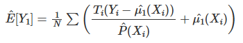 Now that we got a taste of the doubly robust estimator, let’s examine why it is so great. First, it is called doubly robust because it only requires one of the models, P^(x) or μ^(x), to be correctly specified. To see this, take the first part that estimates E[Y1] and take a good look at it.