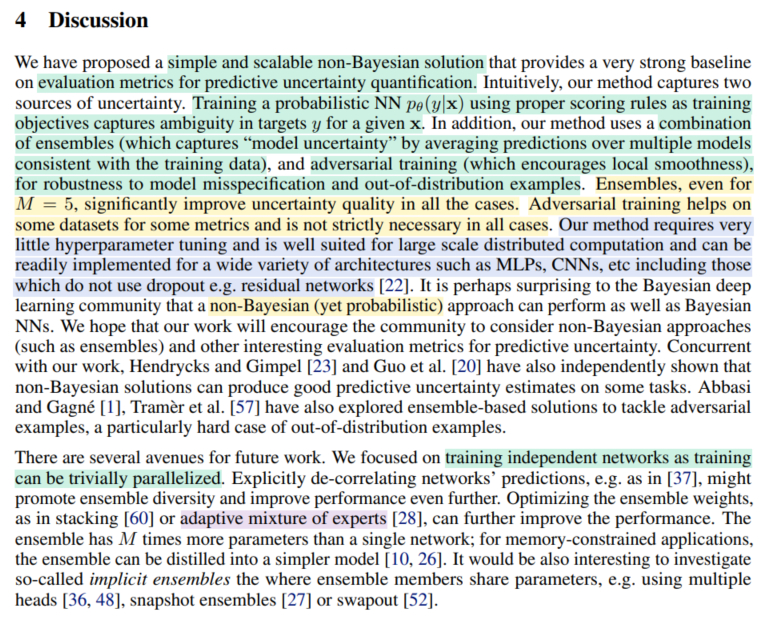 그리고 왜 deep ensembles이 bayesian method보다 uncertainty estimation을 잘 하는지를 생각해 볼 필요가 있다.